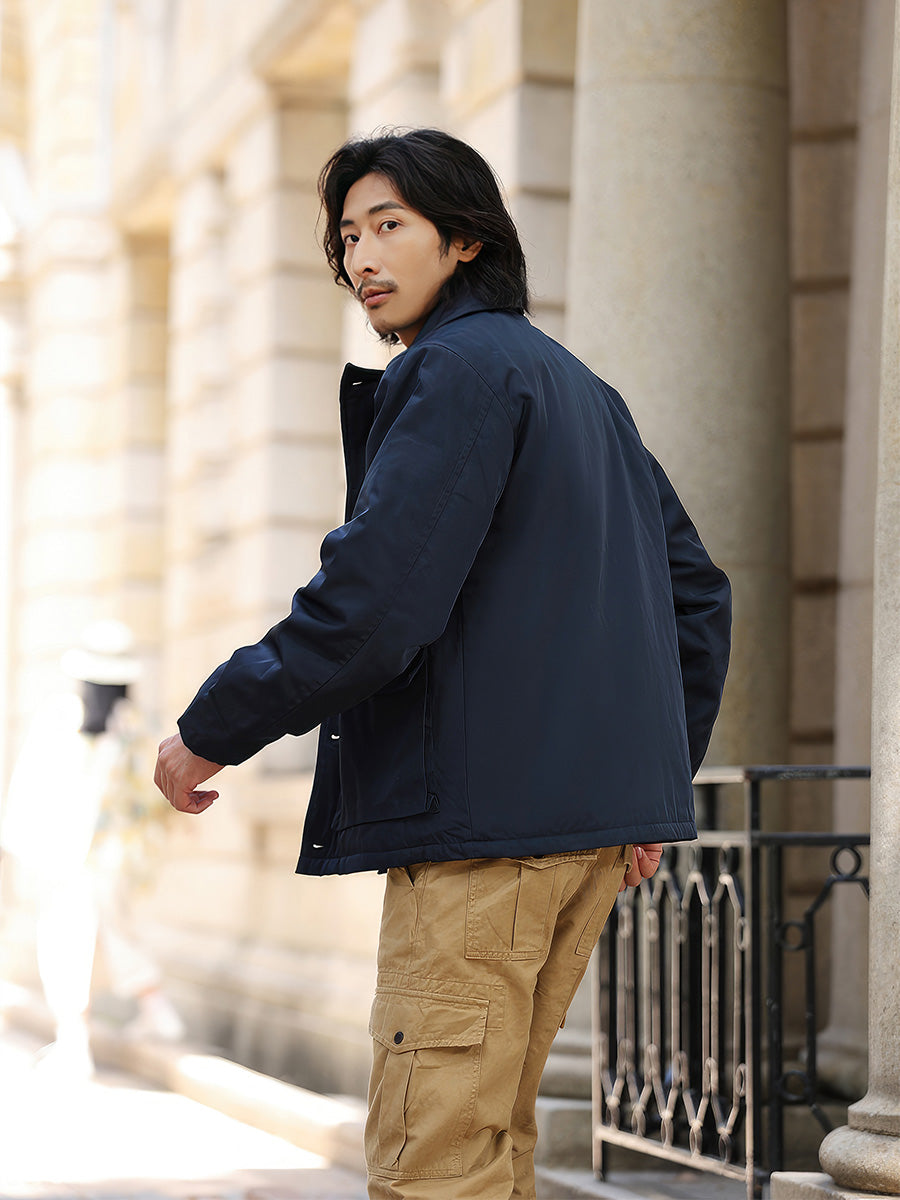The Archer Naval Flight Jacket draws its inspiration from classic U.S. Navy deck jackets and WWII-era pilot coats, reimagined for today’s streets and seasonal chills. Crafted from a durable cotton outer shell with a water-resistant finish, and lined with thick wool-blend fleece, it delivers serious warmth without feeling bulky. The structured collar and clean button front nod to its military roots, while the deep utility pockets keep your essentials close at hand, whether you’re navigating city sidewalks or open decks.