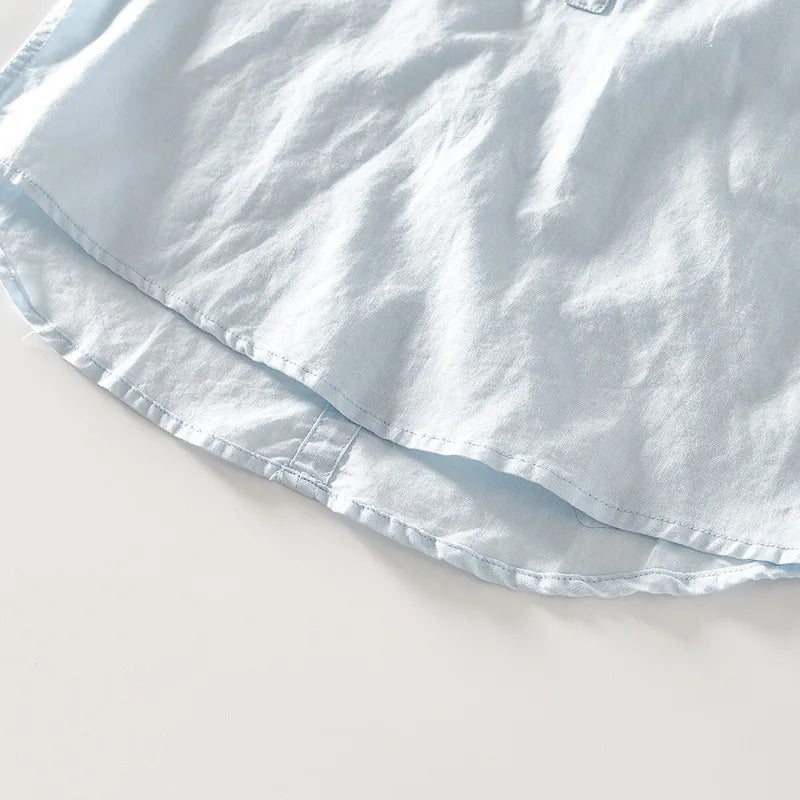 The Dario Casual Grandad Shirt blends relaxed tailoring with a minimalist edge. Featuring a soft cotton-linen blend and the classic grandad collar, this shirt delivers an effortlessly smart look without sacrificing comfort. The half-placket with wooden-style buttons adds subtle detail, while the lightweight fabric keeps it breathable for all-day wear.