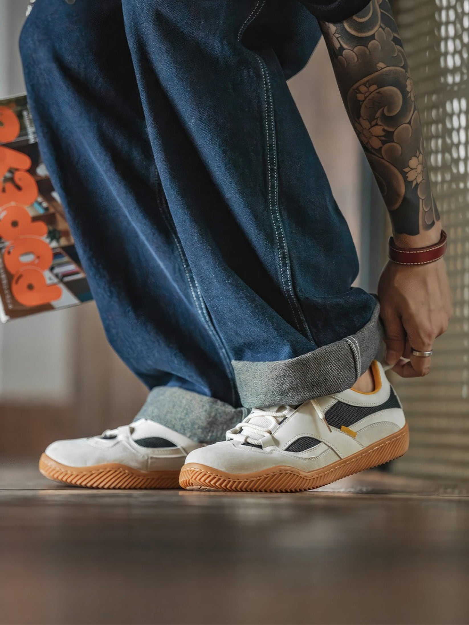 • Retro-inspired gum rubber sole for grip and style