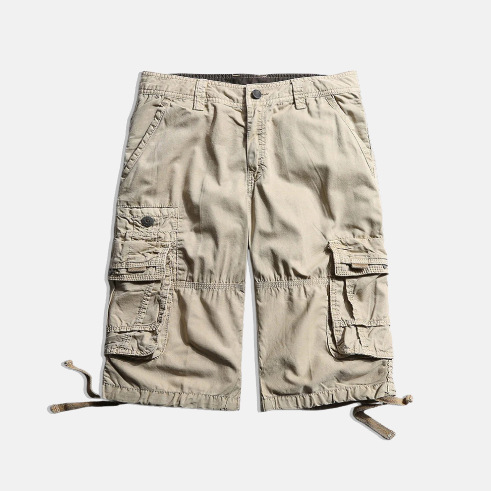 The Marcus Multi Pockets Cargo Shorts are built for movement, storage, and style. Crafted from durable cotton twill, they feature a relaxed fit with functional pleats for added mobility. Multiple cargo pockets keep essentials within reach, while the adjustable drawstring hems let you switch from loose to tapered in seconds. Reinforced stitching and a washed finish give them a broken-in look that’s ready from day one.